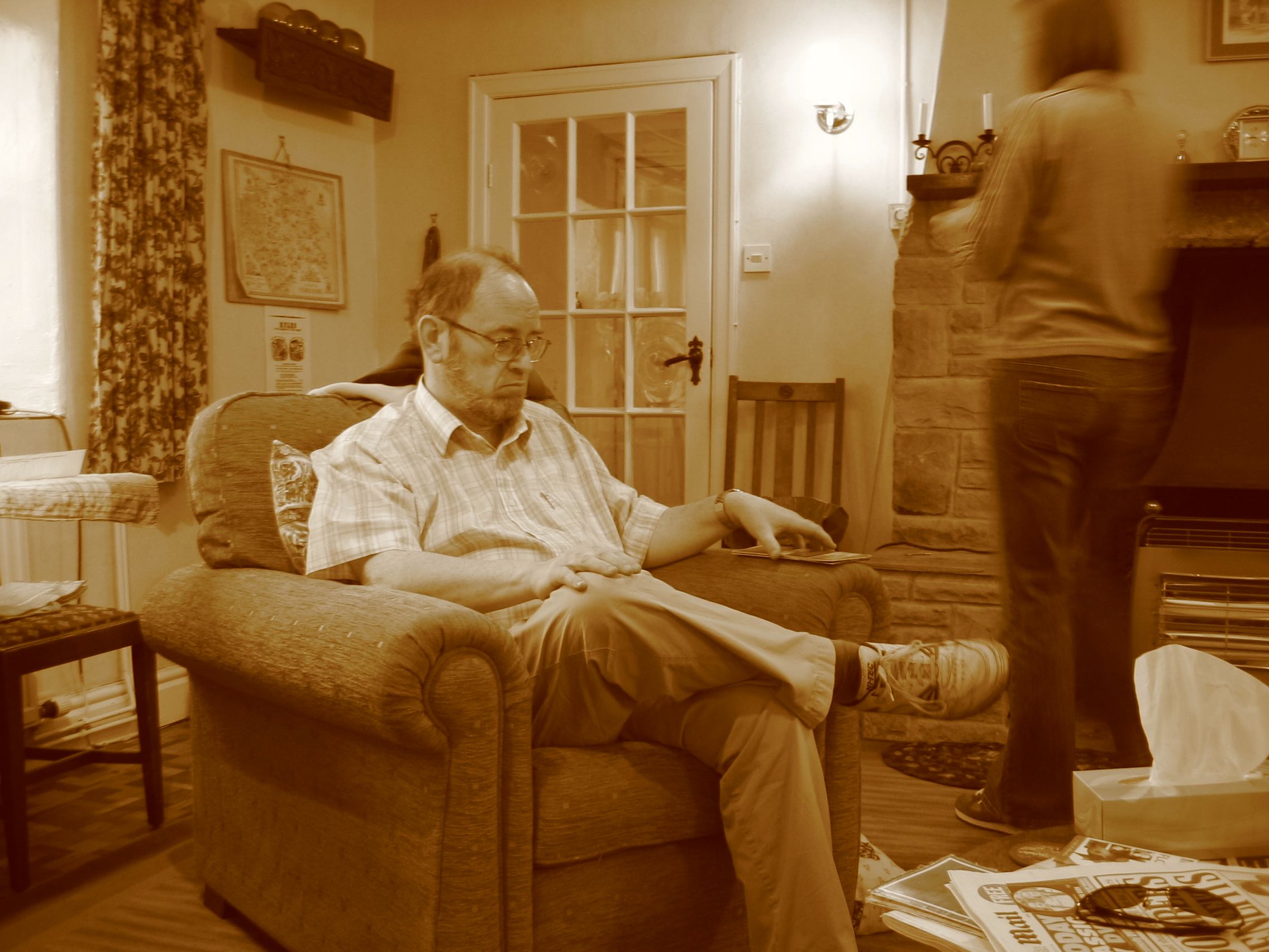 Nigel's (K's dad) nightly newspaper reading.