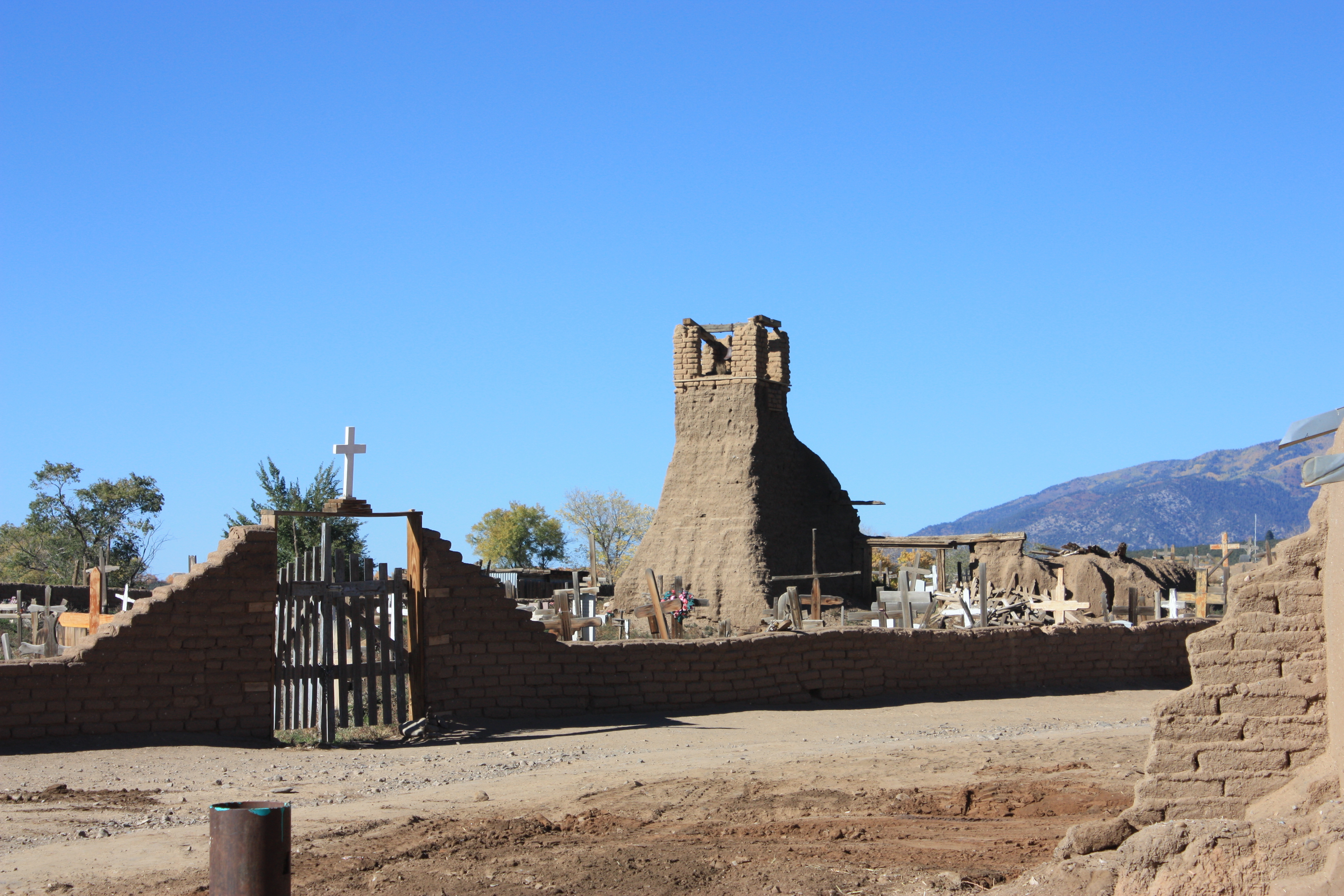 What remains of the first church built by the Spanish - the Indians rebelled, the Spanish burnt down the church killing many inside: they then made the grounds into their cemetery